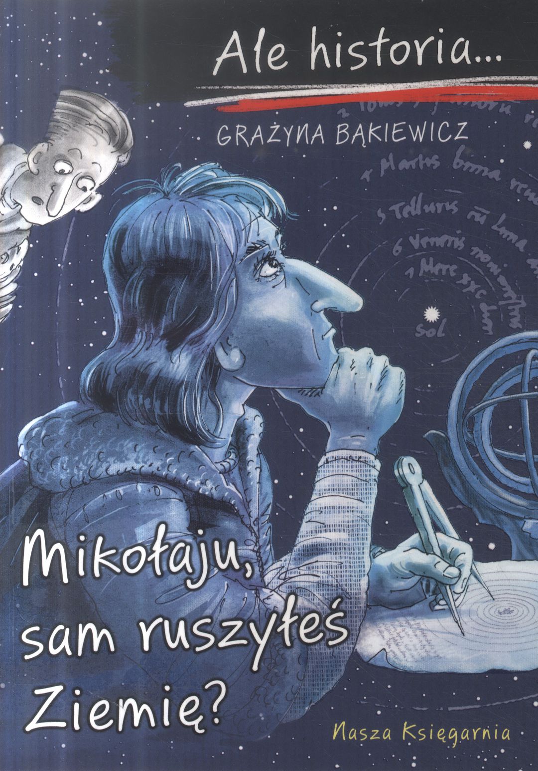 Cześć, jestem Robek. Marzę o latającym rowerze, ale na razie pracuję z Julkiem nad czymś prostszym – latającą deskorolką. Niestety loty próbne są ciągle nieudane… Do tego mam kłopot z tatą. Gdy wymyśla nowy wynalazek, dziwnie się zachowuje. Ostatnio przestał się odzywać, a z domu wychodzi tylko w nocy. Martwię się o niego… Grupka nastolatków przenosi się w czasie, aby sprawdzić, czy Mikołaj Kopernik dokonał swojego przełomowego odkrycia samodzielnie, czy… od kogoś ściągnął! Żeby wypełnić misję, zapiszą się do Akademii Krakowskiej, zatrudnią u Wita Stwosza, a nawet razem z Kopernikiem będą bronić Olsztyna przed Krzyżakami. Dziwne? Wcale nie! W niedalekiej przyszłości nauka historii wygląda zupełnie inaczej… Szczególnie gdy nauczycielem jest pan Cebula. Bogato ilustrowana seria „Ale historia…” z humorem przekazuje fakty historyczne i ciekawostki. W jedenastej części przeczytacie między innymi o nielegalnych książkach, a także o tym, dlaczego złamaną nogę trzeba było leczyć u kata i jak dawniej fałszowano pieniądze.
