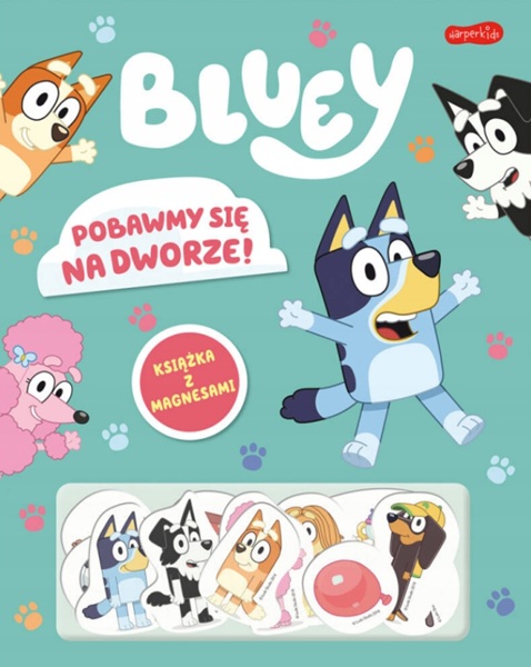 Bluey uwielbia zabawę. Skorzystaj z magnesów, aby Blue, Bingo i ich przyjaciele mogli się bawić w ogrodzie, w parku i nie tylko.